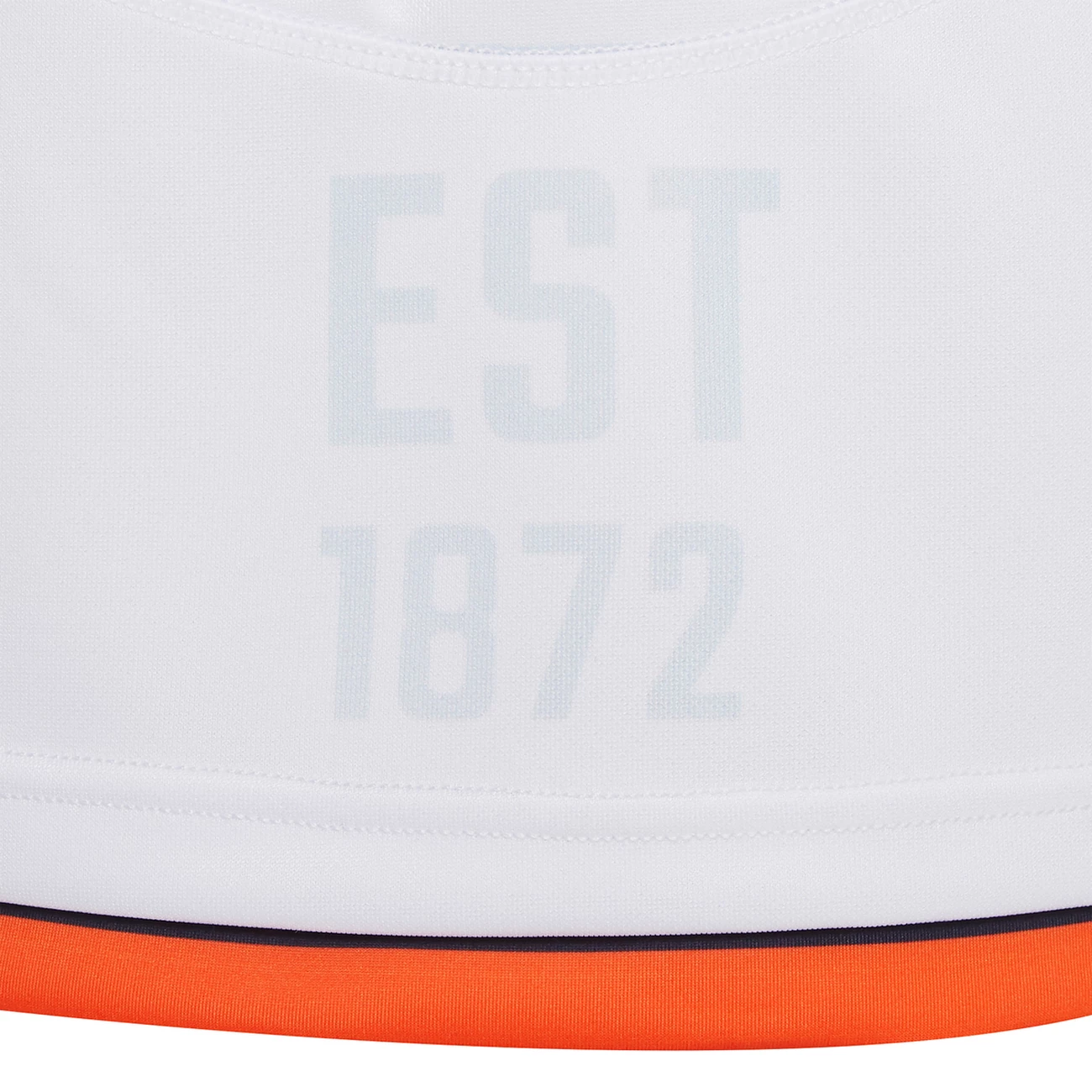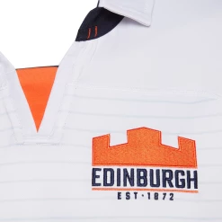 Le maillot de match en déplacement réplique officiel de l’équipe de rugby d’Édimbourg pour la saison 2019/2020. Maillot blanc avec rayures oranges et bleu marine sur le corps, panneaux bleu marine le long des flancs et l’emblème de l’équipe de rugby d’Édimbourg sublimé sur le cœur. Ce maillot à coupe standard et à manches courtes est réalisé à partir de polyester, ce qui le rend parfait pour soutenir l’équipe depuis les tribunes.