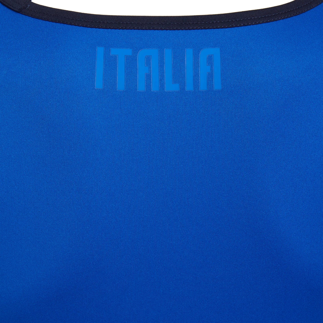 Le nouveau débardeur d’entraînement FIR vous surprendra car il est très performant. Grâce à ses coutures plates avec couverture à 3 aiguilles, il fournit un excellent support durant les phases d’entraînement, même les plus intenses. Au dos, la mention ITALIA se détache ton sur ton. L’article est bleu clair bordé de bleu marine.