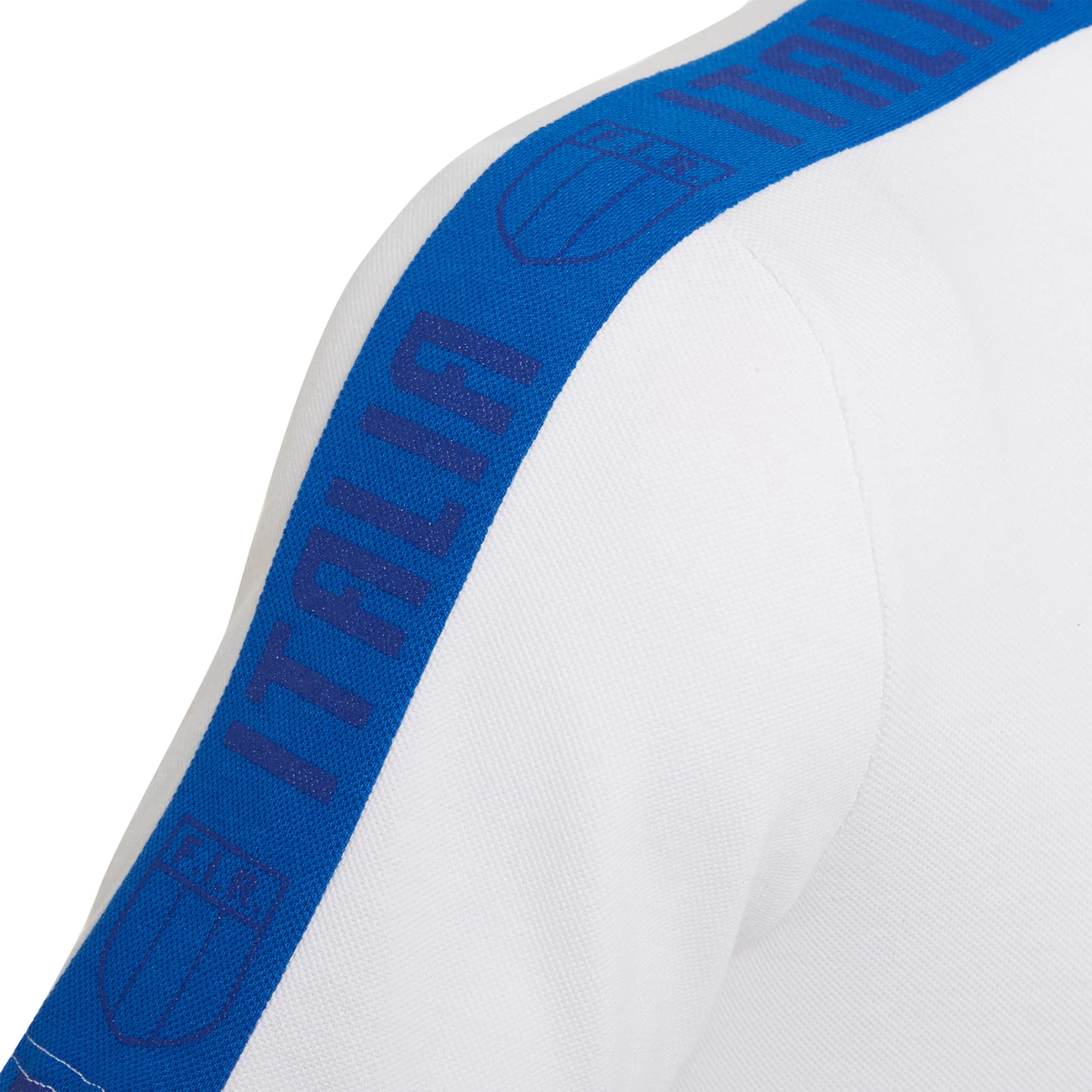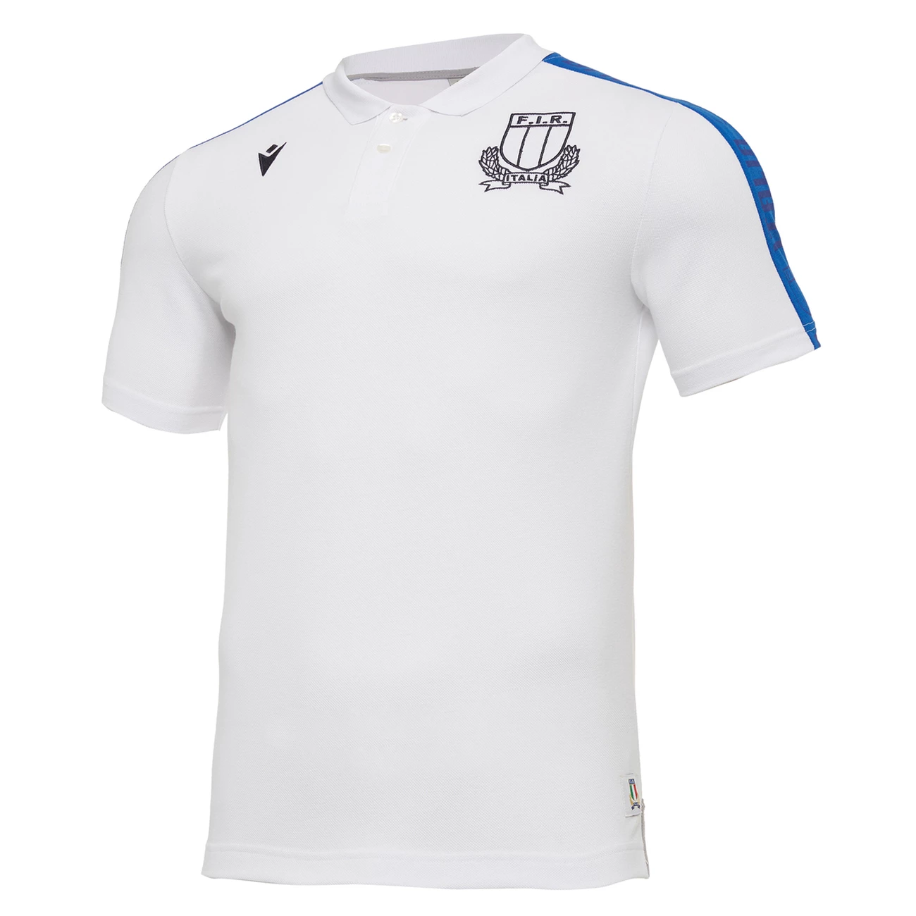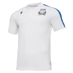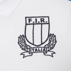 Le nouveau polo modèle leisure FIR 2020/21 se présente blanc avec des rayures bleu clair le long des manches et avec la mention ITALIA. Le coton piqué avec lequel il est réalisé contribue à lui donner de l’élégance et de la souplesse. Le patch du club est brodé sur la poitrine, mais en monochromie, détail encore plus riche et raffiné.