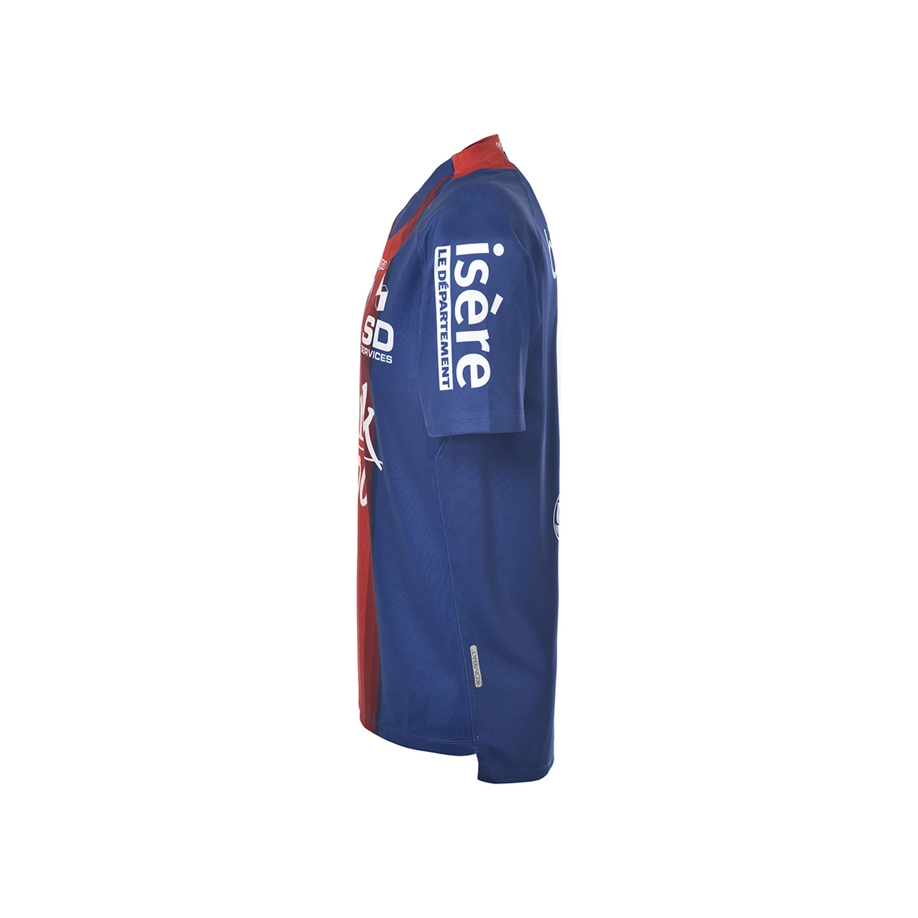 Elément indispensable dans le placard d’un fan du FC Grenoble. Avec ce maillot Replica, le supporter pourra porter fièrement les couleurs du FCG sur et en dehors des terrains de rugby. Il est également conseillé de se rendre au stade des Alpes avec ce produit sur les épaules !